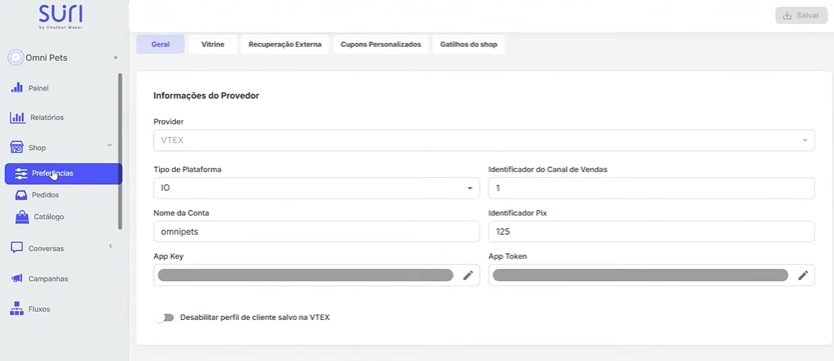 Essa funcionalidade Suri Shop está disponível para integrações como: