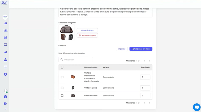 A funcionalidade funciona com qualquer integrador (VTEX, Suri Shop Loja, Nuvemshop, Linx, Neomode, Mercadapp, entre outros), permitindo apresentar combinações prontas para compra.